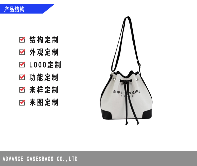 廠家定制帆布包包定制,背挎單肩斜挎包,束口抽繩撞色水桶包,簡約的設(shè)計風(fēng)格,大氣的五金搭配,走線勻稱,內(nèi)部實用,顏色正,質(zhì)感好。