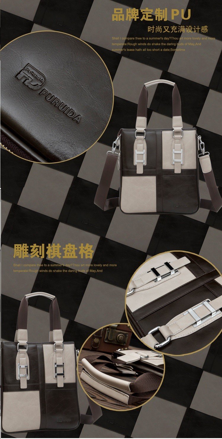 廠家定制男士休閑挎包,材料采用品牌品牌定制PU,棋盤格拼接外觀,時尚又充滿設計滿,大容量主體,適合商務休閑。定制熱線:0763-3151107.13922558602.