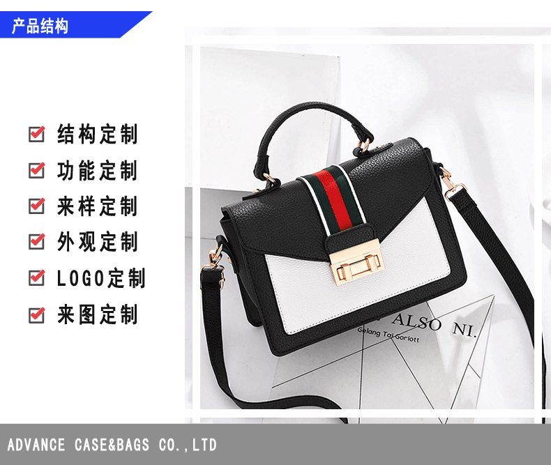 廠家定制時(shí)尚女包,單肩包,簡(jiǎn)約派的斜挎包,簡(jiǎn)約的設(shè)計(jì)風(fēng)格,大氣的五金搭配,走線勻稱,內(nèi)部實(shí)用,顏色正,質(zhì)感好。