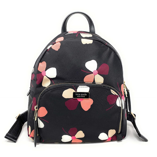 廠家定做女包,時(shí)尚印花尼龍面料,雙向拉鏈閉合和拉鏈前口袋,休閑雙肩背包。
