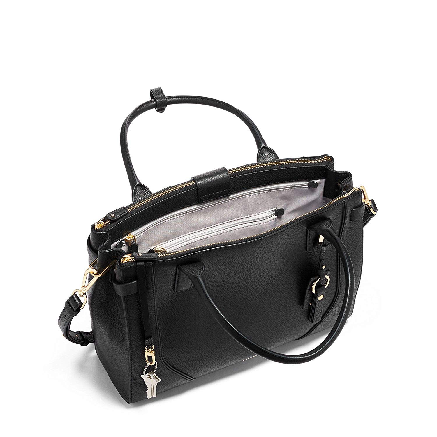 內(nèi)部特征:2 個(gè)媒體口袋,拉鏈天鵝絨襯里珠寶口袋,有 拉鏈口袋,卡袋,筆袋,鑰匙帶