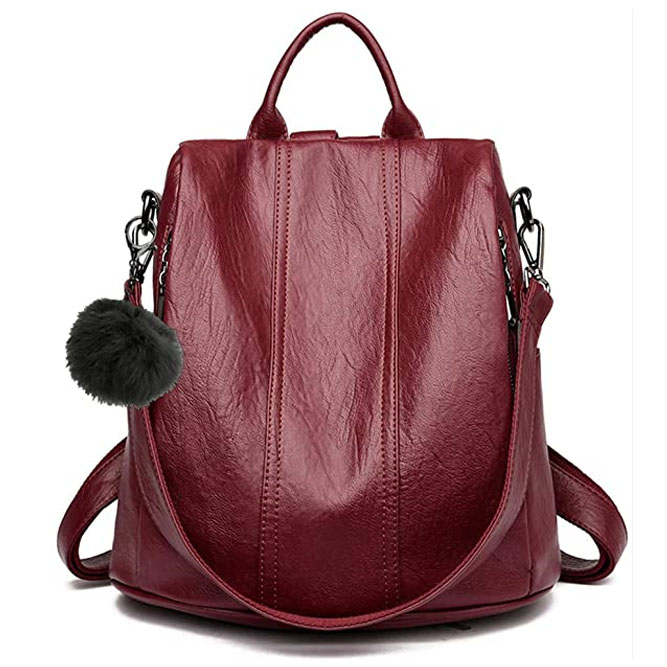 廠家定制女士背包,采用輕盈、抗撕裂和耐候的防撕裂 PU 皮帆布,可做手提包,單肩包,雙肩包。背面拉鏈?zhǔn)街鞲魧涌裳b貴重物品,側(cè)口袋可裝水壺或零食,兩個(gè)外部拉鏈?zhǔn)占{袋方便取用,適合城市行走。 PU 皮革、銀色五金配件和絨球配件設(shè)計(jì), 送給女性的時(shí)尚禮品。訂購(gòu)熱線:0763-3151107.13955228602.