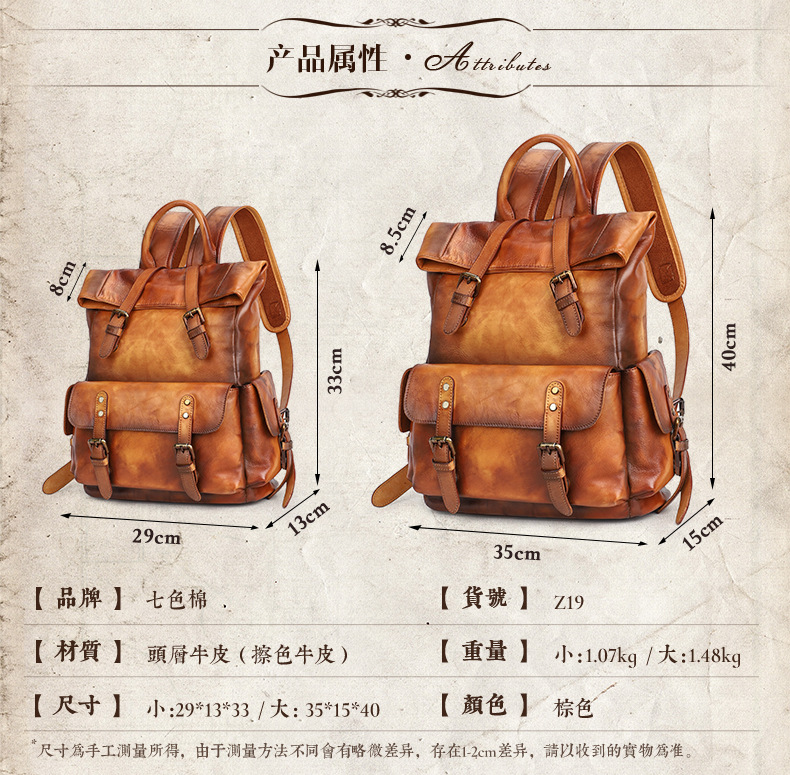 廠家定雙肩包真皮旅行包植鞣革牛皮女包時(shí)尚電腦包歐美復(fù)古戶外背包,簡約的設(shè)計(jì)風(fēng)格,大氣的五金搭配,走線勻稱,內(nèi)部實(shí)用,顏色正,質(zhì)感好。