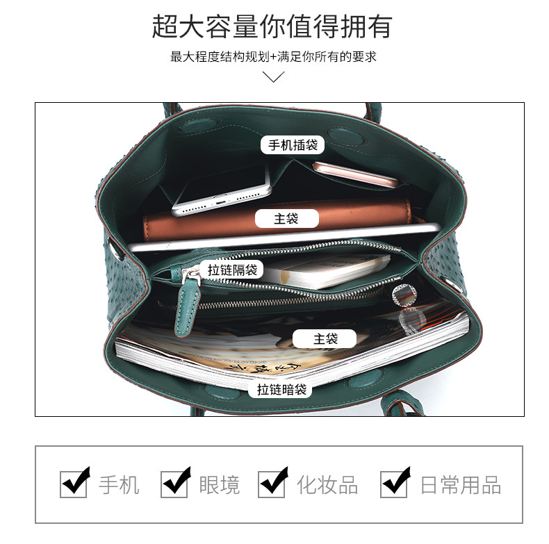 廠家定制鴕鳥(niǎo)皮女包,真皮斜挎包女歐美鉑金包手提包女手挽包,簡(jiǎn)約的設(shè)計(jì)風(fēng)格,大氣的五金搭配,走線勻稱,內(nèi)部實(shí)用,顏色正,質(zhì)感好。