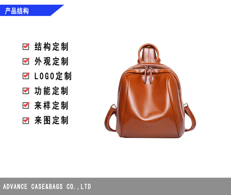 廠家定制女士雙肩包,新款女士雙肩包簡約時尚潮流風范款,簡約的設計風格,大氣的五金搭配,走線勻稱,內(nèi)部實用,顏色正,質感好。
